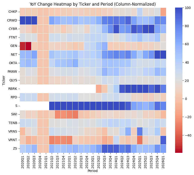 Chart 1: Comparative YoY Change in Sales for Cybersecurity Companies, Q1’20-Q1’26